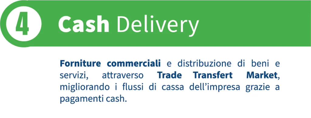 Forniture commerciali di beni e servizi, attraverso Trade Transfer Market, migliorando i flussi di cassa grazie a pagamenti cash e incrementando le scorte di magazzino.